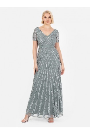 La Qayara Misty Green Chevron Sequin Embellished Georgette & Soft Net Maxi Dress