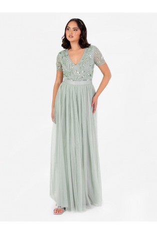 Refined and effortlessly elegant, the La Qayara Sage Green Floral Embroidered Maxi Dress is designed to elevate your occasion wardrobe with timeless sophistication. Crafted from lightweight georgette with soft net detailing, this maxi dress offers a graceful drape and a beautifully structured silhouette.The bodice features intricate floral embroide..