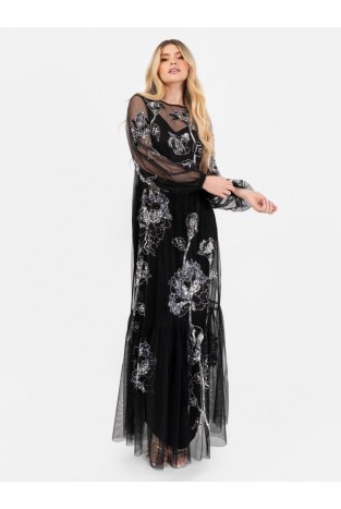 La Qayara Rosey Pink Puff Sleeve Floral Midaxi Dress